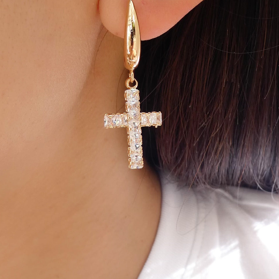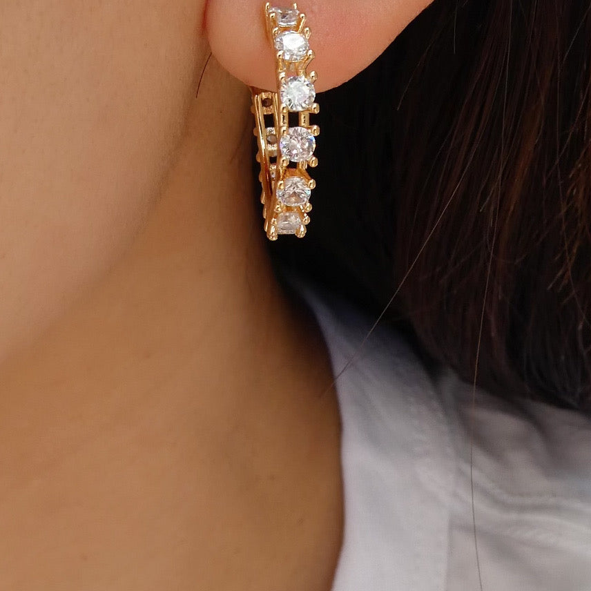 14K Crystal Caroline Hoops
