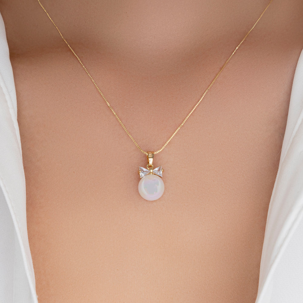 Pearl & Crystal Bow Necklace