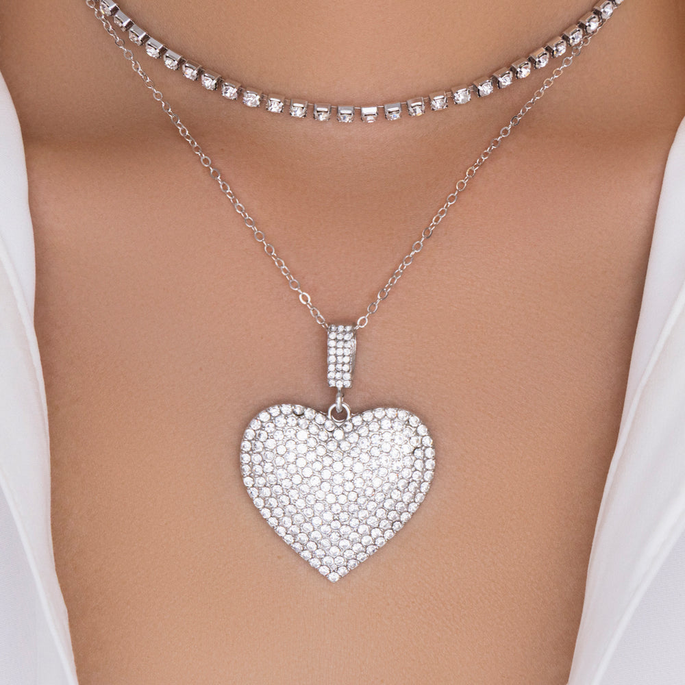 Crystal Peyton Heart Necklace (Silver)