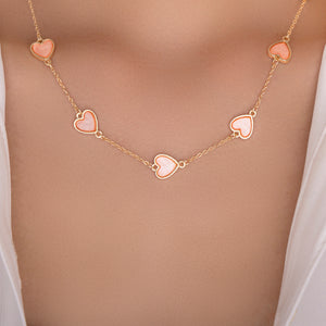 Gracie Heart Row Necklace (Pink)