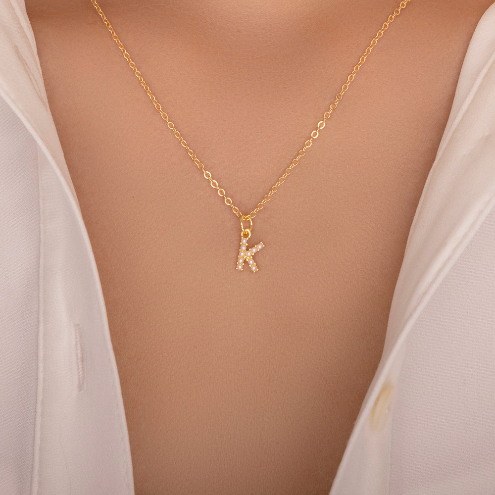 Mini Pearl Letter Necklace (K)